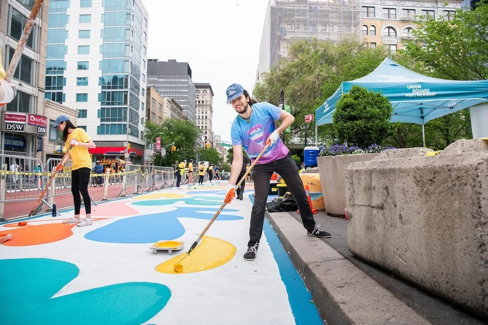 Union Square Partnership is proud to partner with NYC DOT Art as well as featured artist Talisa Almonte. This year’s mural is also sponsored by Con Edison, Target, The Bromley Companies, and W New York - Union Square. To view the finished street mural, “Flowing Together,” stop by Union Square-14th Street from May 17, 2024, onward.